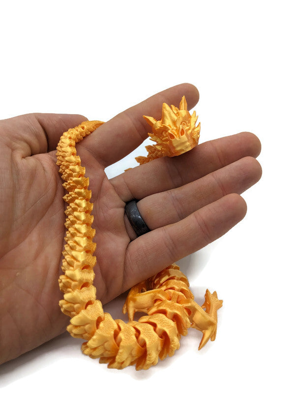 Ein majestätischer Drache, ganz in Gold – edel, detailreich und mit beweglichem Körper. Dieses kunstvoll gefertigte Wesen verleiht jedem Raum einen Hauch von Magie und Anmut. Ideal als Deko, Geschenk oder Highlight in jeder Sammlung.