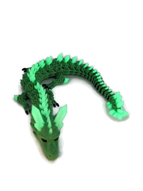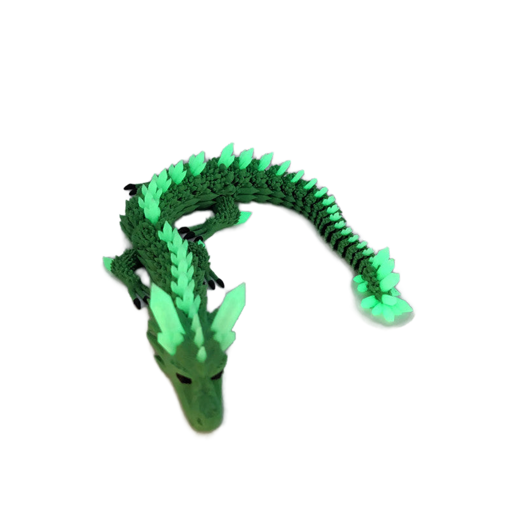 Tief aus den nebelverhangenen Schluchten der Moorschattenlande erhebt sich der Schattenmoos-Drache – ein Wesen aus Grün, Licht und uralter Macht. Seine bewegliche Struktur lässt ihn lebendig wirken, sein Körper schimmert in geheimnisvollem Glow-in-the-dark – als würde er das Leuchten vergessener Wälder in sich tragen.